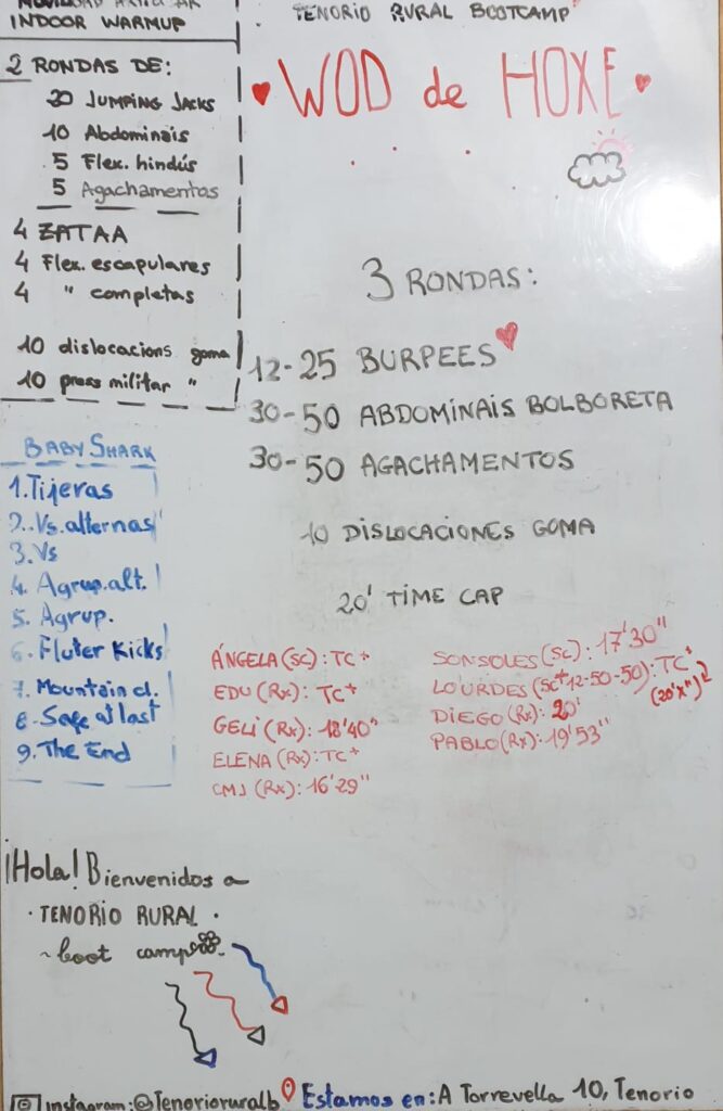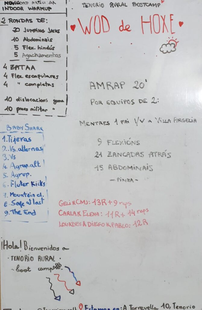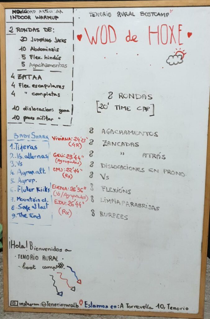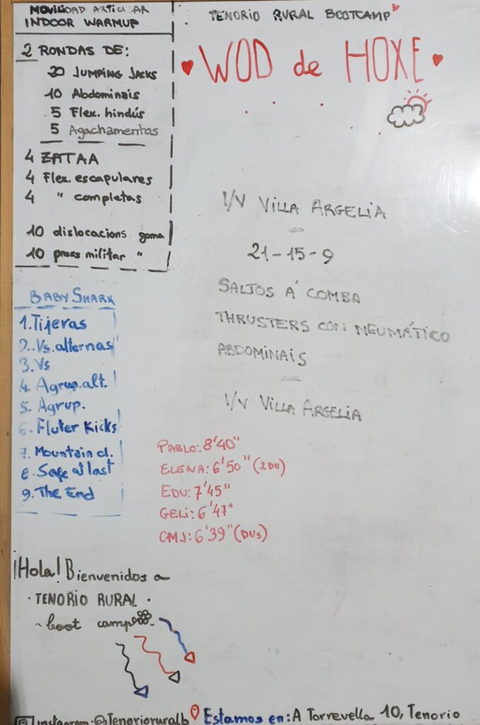 Hoxe repetimos o WOD que fixemos a distancia (polas restriccións) o día 13 de novembro do ano pasado e uns días despois presencialmente.