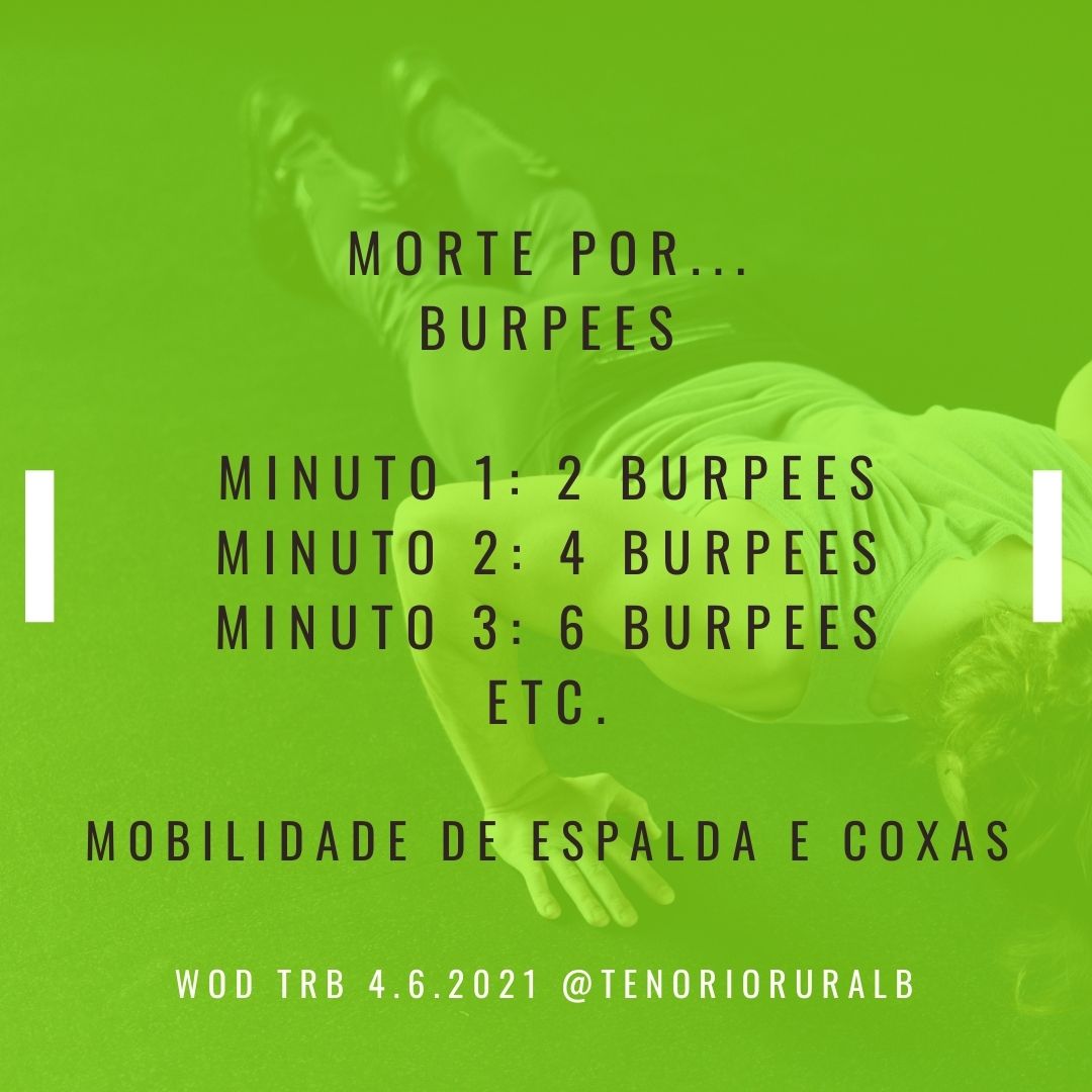 WOD TRB do 4 de xuño de 2021 Publicado porTenorio Rural Bootcamp05 de junio de 202105 de junio de 2021Publicado en WOD Disculpa, pero esta entrada está disponible sólo en galego. Compartir: Comparte en Facebook (Se abre en una ventana nueva) Facebook Compartir en X (Se abre en una ventana nueva) X